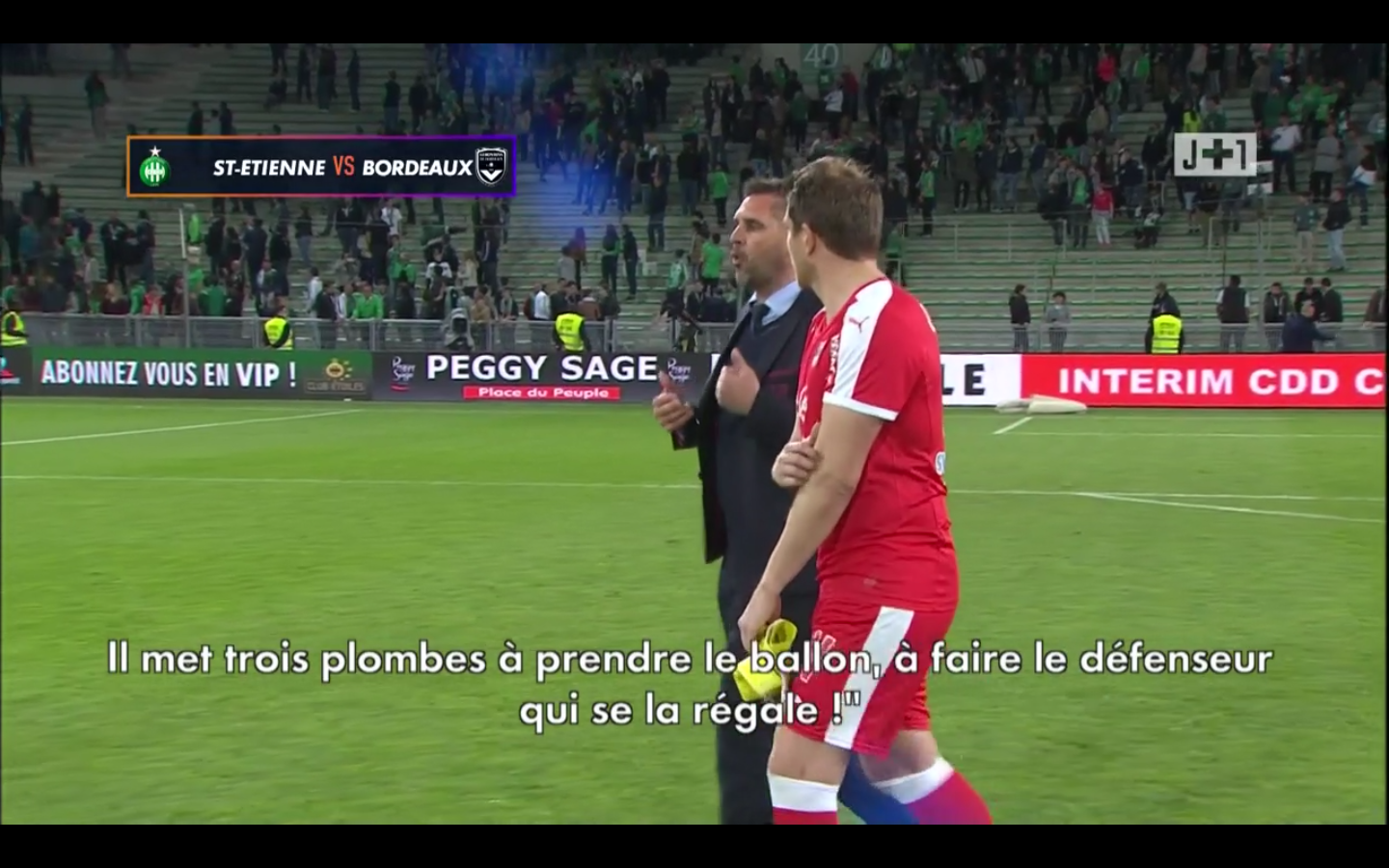 Dans Version Originale, on aperçoit par deux fois Jocelyn Gourvennec. La première fois en saluant Christophe Galtier, honteux de ne pas être aussi bien habillé que “Joce”, et la seconde fois, à la fin du match, où on le voit parler à Cédric Carrasso d’un joueur bordelais trop lent pour lui. Parle-t-il de Nicolas Pallois où de Diego Contento ? On vous laisse vous faire votre propre avis, mais en tout cas, les oreilles de l’un d’entre eux ont dû siffler.