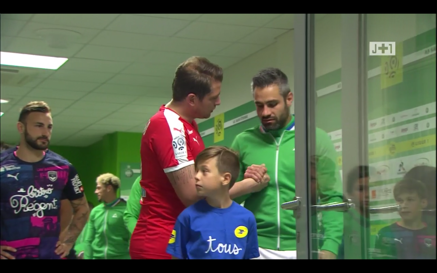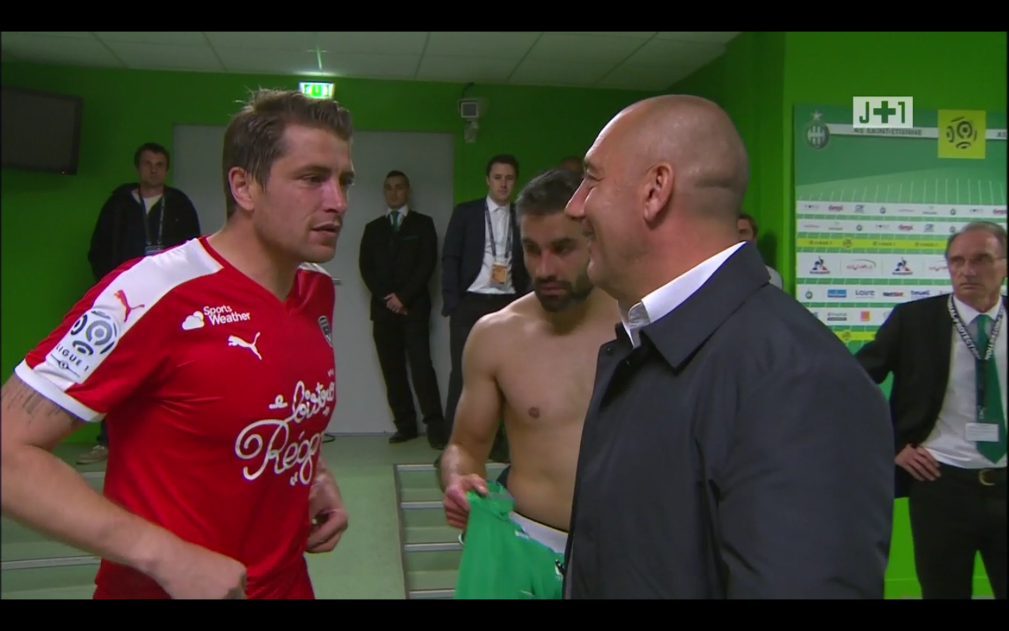 Enfin, à la fin du match, les deux protagonistes ont voulu échanger leur maillots. Un des intendants de l’ASSE lui dit : “Echange pas ton maillot y’a les caméras”. Réponse de Carrasso : “Et alors ?”