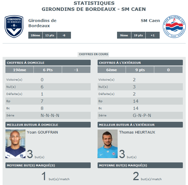 Les stats d’avant Caen