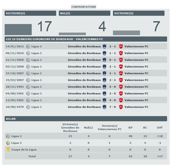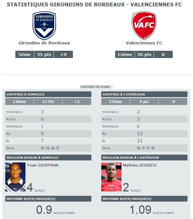 Bordeaux – Valenciennes, les stats