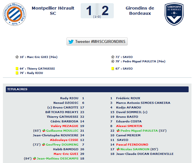 Romain Romain 29/10 - 17h18 ActualitésAvant-match [CDL] Les stats d’avant Montpellier La feuille de match Montpellier-Bordeaux de 2002 : Source : LFP pour les stats, AFP pour les photos