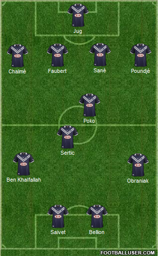 Bordeaux : Jug – Chalmé, Faubert, Sané, Poundjé – Ben Khalfallah, Poko, Sertic, Obraniak © – Bellion, Saivet.