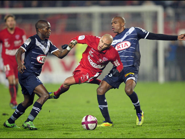 Dijon commence fort, joue vite vers l’avant, et en bloc derrière… Bordeaux essaye de construire et d’être dangereux par le jeu, même si ce n’est pas vraiment évident au vu de l’état du terrain ce soir. 18ème minute, et un des deux arbitres de touche se claque, et est donc remplacé par le quatrième arbitre. Enfin un peu d’animation dans ce match ! Frappe en pivot de Sané deux minutes plus tard sur un corner raté de Plasil, et presque une véritable occasion. Pas de doute, Dijon s’est un peu endormi et ne peut que regarder Bordeaux développer son jeu… Une minute plus tard, Gouffran frappe en bout de  course, en taclant, et le portier dijonnais intervient. 28ème minute et Bordeaux se retrouve à deux contre deux sur un ballon lointain ; Diabaté saute pour dévier le ballon et le récupère puis nouvelle frappe en pivot et en taclant, et belle parade du pied de Reynet ! Deux minutes plus tard, nouveau bon centre de Chalmé pour Diabaté qui la dévie de la tête sur la barre transversale ! Ca chauffe ! Dijon est clairement dominé mais une contre attaque éclair se profile, mais finalement ne donne rien… Dijon ne peut qu’évoluer en contre, et Bordeaux sur cette même action va copier son adversaire, mais la frappe de FBK est trop croisée et finit… en touche ! 38ème minute, une très bonne entente entre Gouffran et Diabaté ; le premier dévie le ballon de la tête pour l’International malien qui fixe, crochète, et frappe : capté en deux temps par le portier dijonnais. Deux minutes plus tard, alors que l’on voit Bordeaux dominer sans partage, Corgnier s’écarte sur la droite et croise très bien sa frappe, que Carrasso repousse du bout des doigts en corner.