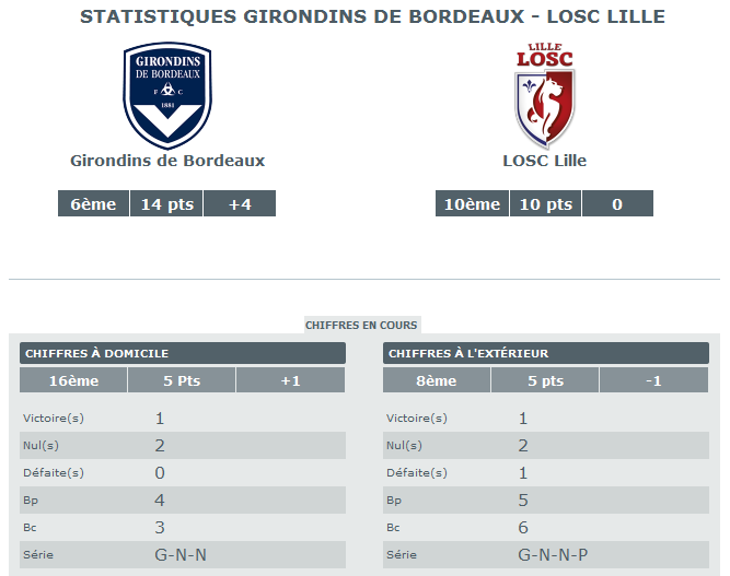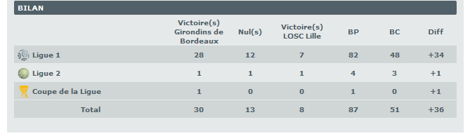 FCGB – LOSC, les stats