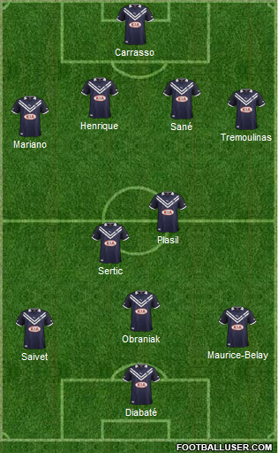Bordeaux : Carrasso – Mariano, Henrique, Sané, Trémoulinas – Obraniak, Plasil © (Poko, 67ème), Sertic, Maurice-Belay, Saivet – Diabaté.