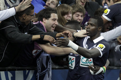Ce sera ensuite la panique côté savoyard ! Grosse confusion dans la surface et Obraniak récupère le ballon et décale Saivet : grosse frappe du milieu bordelais que repousse Laquait, encore ! Le ballon revient vite et ce même Laquait, au duel avec Diabaté, perd son face à face mais un de ses défenseurs dégage sur sa ligne ! Evian souffre ! On voit alors Bordeaux reculer dans sa zone, se pensant définitivement à l’abri… Et comme souvent, Bordeaux va se reposer sur ses lauriers et va s’endormir. 70ème minute, Barbosa efface Mariano et rentre dans la surface… Une passe similaire à celle de Wass va atterrir directement sur Dja Djédjé au second poteau, laissé libre de tout marquage. Egalisation d’Evian (2-2) ! L’occasion pour eux de reprendre une fois encore du poil de la bête… 74ème minute, le coup franc lointain et direct de Khlifa passe juste au dessus des buts de Carrasso, cela dit sur la trajectoire. Sagbo y va aussi de son exploit individuel mais manque sa frappe excentrée trois minutes plus tard. 81ème minute, le centre de Tremoulinas qui a pris appuis sur Maurice-Belay, trouve la reprise de Diabaté : au dessus. Cela sent les prolongations à plein nez… C’était sans compter cette 89ème minute. Petit extérieur du pied du Maurice-Belay dans la profondeur et la course de Diabaté au dessus de la défense… Il se présente seul, fixe le portier adverse, et met un petit plat du pied tranquillement ! BUUUUUUUUTTTTTTTTTT pour les GIRONDINS DE BORDEAUX !!!! Certainement le but de la victoire (3-2) ! Et ça ne manquera pas ! Bordeaux fera tourner lors des trois minutes d’arrêts de jeu, et Evian ne reviendra pas une troisième fois à la marque ! Bordeaux peut laisser exploser sa joie ! Communier avec les supporters ! Décompresser de cette longue saison ! Profiter ! Penser aux vacances et à la présentation du Trophée !