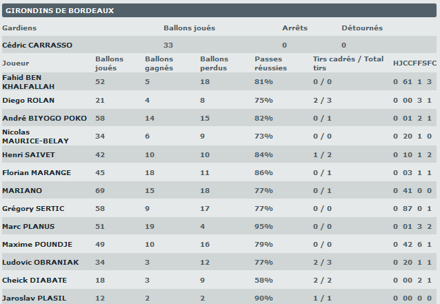 Les stats des bordelais