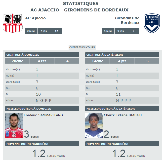 Les stats d’avant Ajaccio