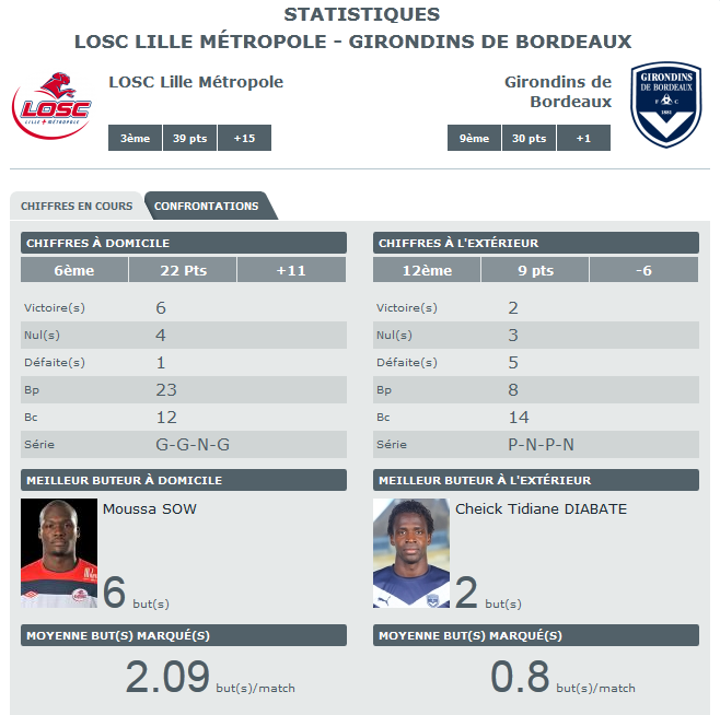 Les stats d’avant Lille