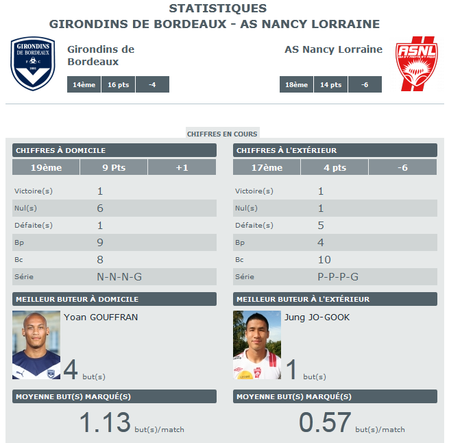 Les stats d’avant Nancy