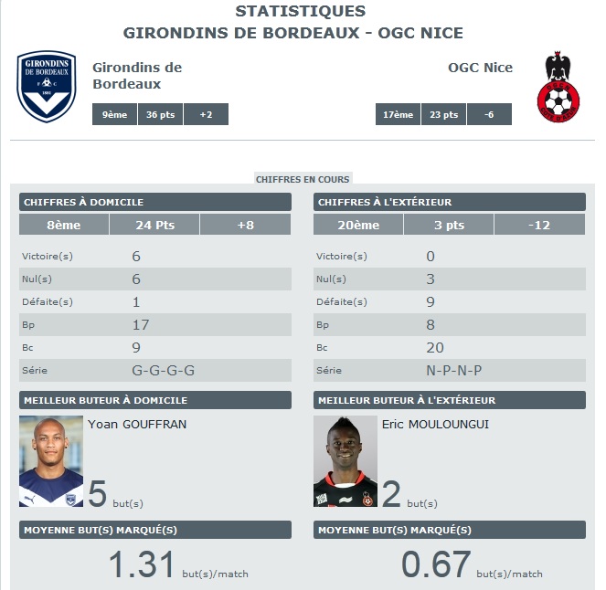 Les stats d’avant Nice