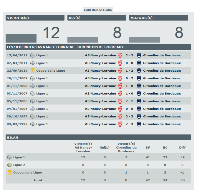 Nancy – Bordeaux, les stats