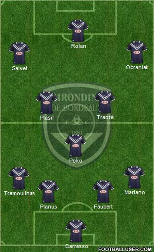 Bordeaux : Carrasso – Mariano, Faubert, Planus, Tremoulinas – Poko (Ben Khalfallah, 81ème), Obraniak (Maurice-Belay, 68ème), Plasil, Traoré, Saivet – Rolan (Diabaté, 68ème).