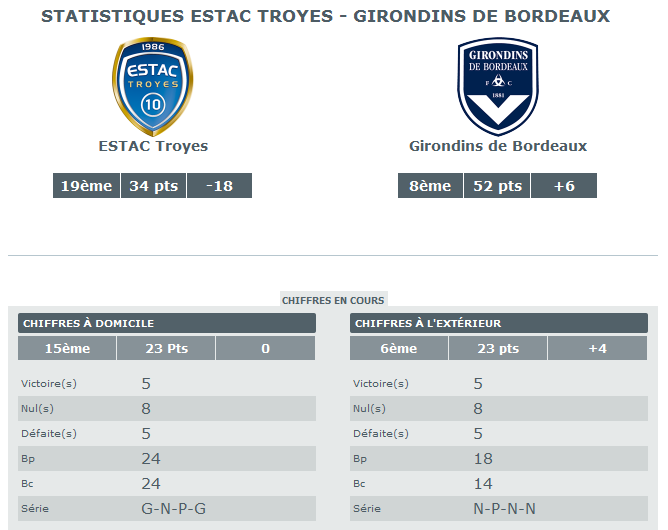 Troyes – Bordeaux, les stats