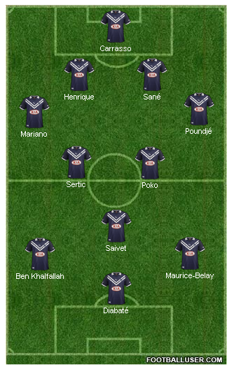 Bordeaux : Carrasso – Mariano (Marange, 68ème), Poundjé, Henrique, Sané – Sertic, Poko, Ben Khalfallah (Tremoulinas, 57ème), Saivet, Maurice-Belay (Traoré, 65ème) – Diabaté.