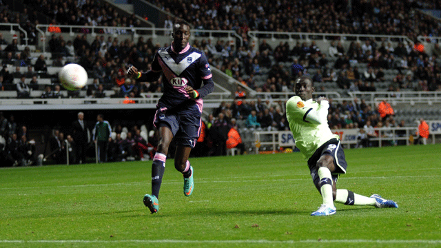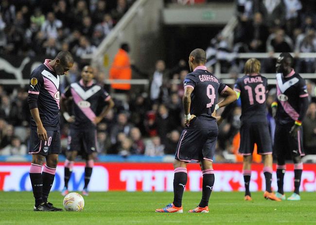 MT. Contre le cours du jeu ; Bordeaux est mené deux à zéro face à une équipe de Newcastle extrêmement réaliste. Bordeaux a même le ballon, produit du jeu : mais en face, c’est un bloc, qui défend, et qui attend de contre-attaquer… à merveille. Pourtant, physiquement, Bordeaux a eu même le dessus à plusieurs reprises, jouant le jeu anglais, sans commettre de faute. Un exploit individuel sur le premier but. Un CSC avant la mi-temps. Bordeaux est logiquement abattu à la fin de cette première période. Francis Gillot, au vu du match face à Brest dimanche, va alors faire quelques changements au retour des vestiaires avec les entrées de Diabaté et Nguemo, à la place de Plasil et Obraniak. Bordeaux repasse donc à cinq derrière avec Sané qui recule d’un cran. De l’autre côté, changement de gardien…