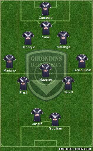 Bordeaux : Carrasso – Mariano, Henrique, Sané, Marange, Tremoulinas – Nguemo (Planus, 46ème), Plasil ©, Saivet (Sertic, 46ème) – Gouffran (Diabaté, 82ème), Jussiê.