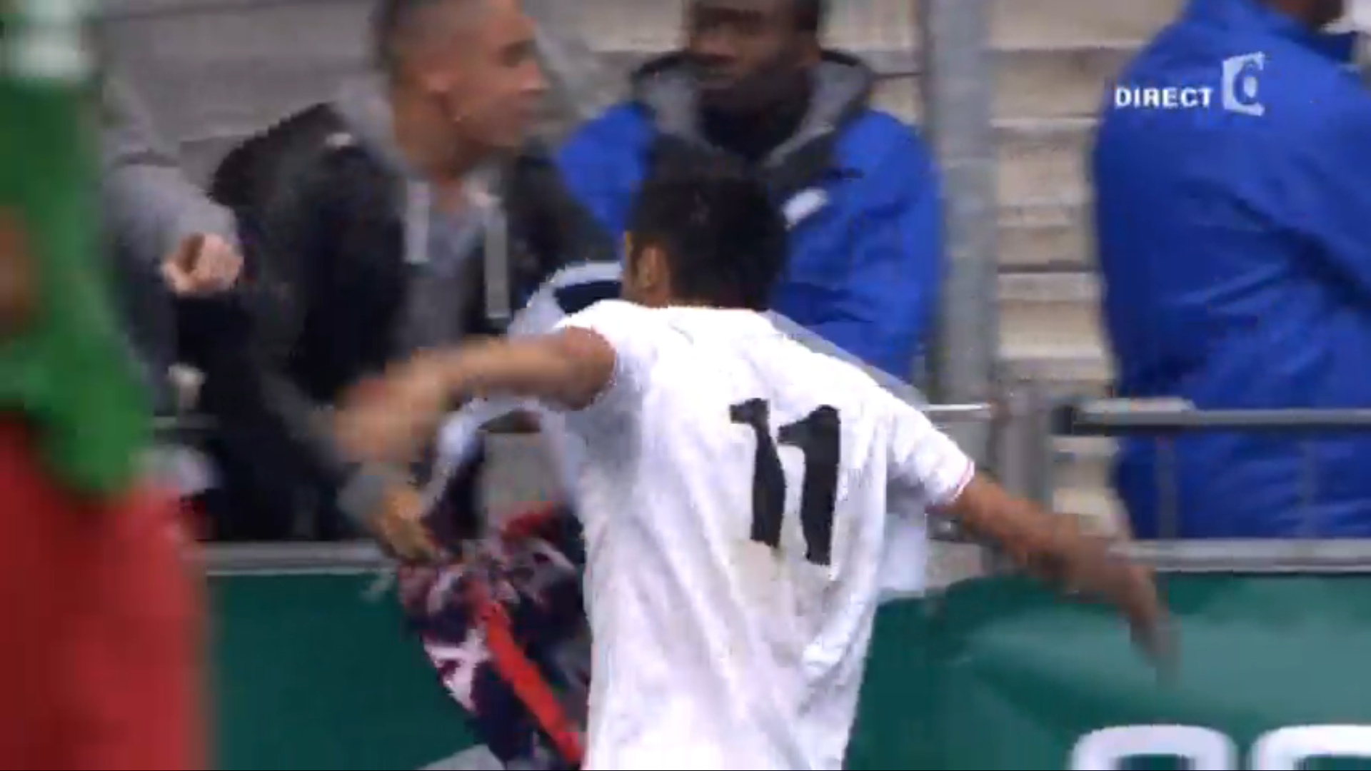 62ème : mauvais choix de Sacko qui choisit de frapper, en étant excentré, alors que le centre plein axe semblait plus opportun.