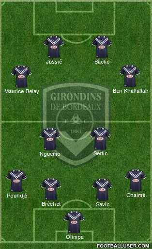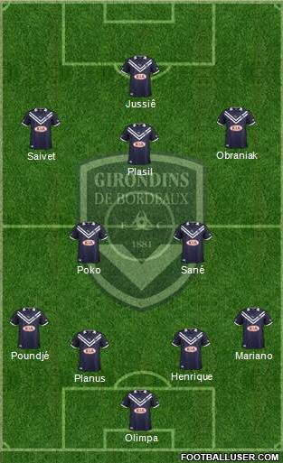 Bordeaux (1ère) : Olimpa, Mariano, Henrique, Planus, Sané, Poundjé, Obraniak, Biyogo Poko, Plasil, Saivet, Jussiê.