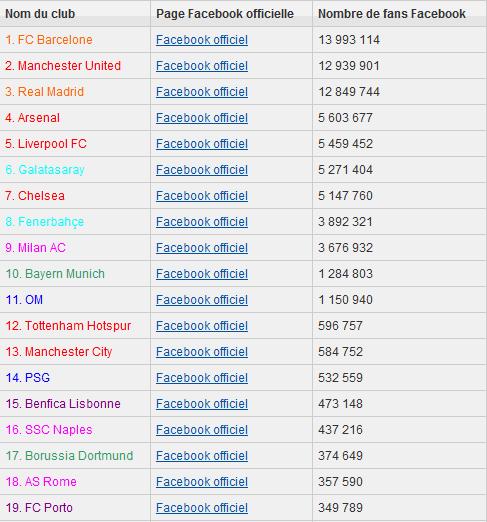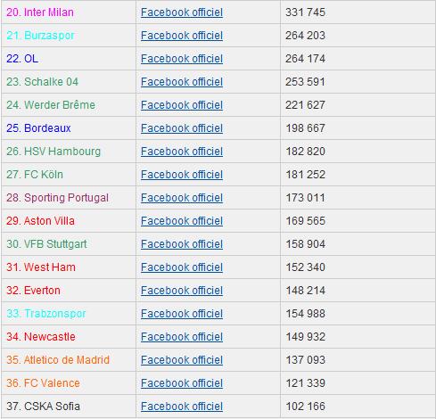Le club des Girondins de Bordeaux est classé 25ème club européen … sur facebook ! Une étude du site sportune a référencé les clubs ayant le plus de supporters sur le réseau social le plus connu du monde. Le FCGB perd 2 places au classement mais reste le 4ème club français derrière l’OM (11ème), le PSG (14ème) et Lyon (22ème).