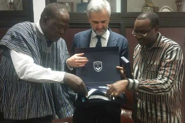 Sur invitation du Président de l’Académie Football Plus (AFP) du Burkina, Amado Traoré, le président des Girondins de Bordeaux, Stéphane Martin était en visite à Ouagadougou du 19 au 21 février 2018 afin de tisser des relations avec les centres de formation de la capitale Burkinabé. Au terme de ses trois jours, le Président du FCGB a annoncé vouloir faire de l’AFP un partenaire pour le club au scapulaire. Il a notamment rencontré le Président de la Fédération burkinabé de football, Sita Sangaré, ainsi que le ministre burkinabé des Sports, Daouda Azoupiou.