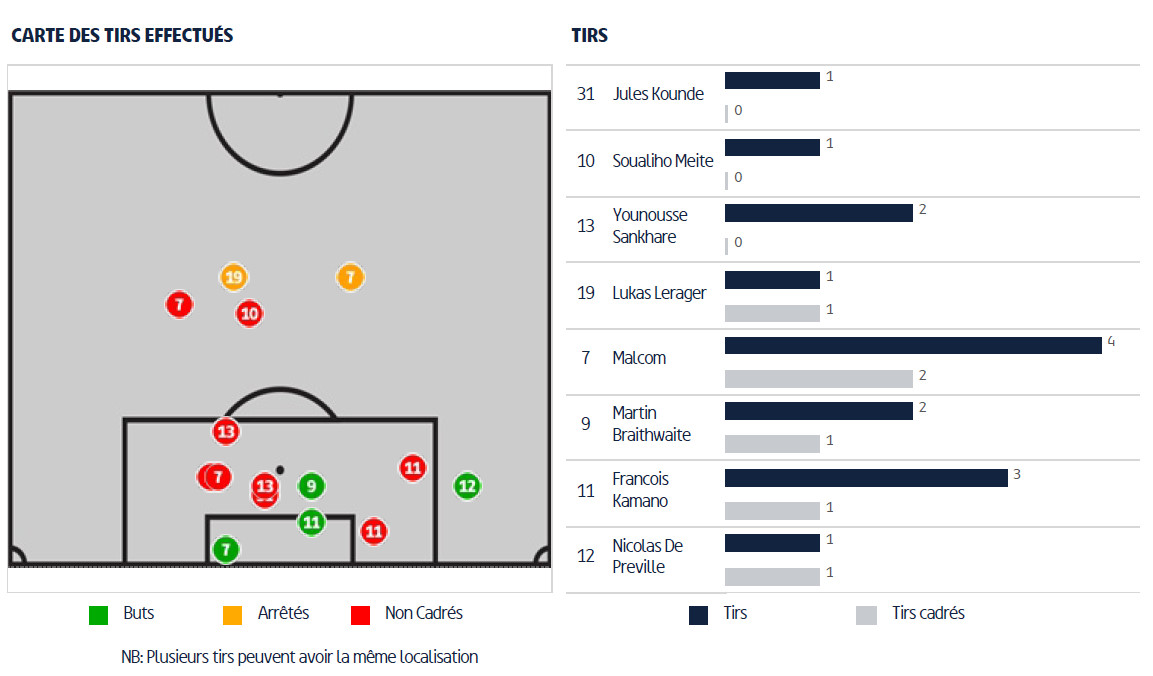 Voici les dernières statistiques d’après match de la rencontre entre le FC Metz et les Girondins de Bordeaux, proposées par la Ligue.