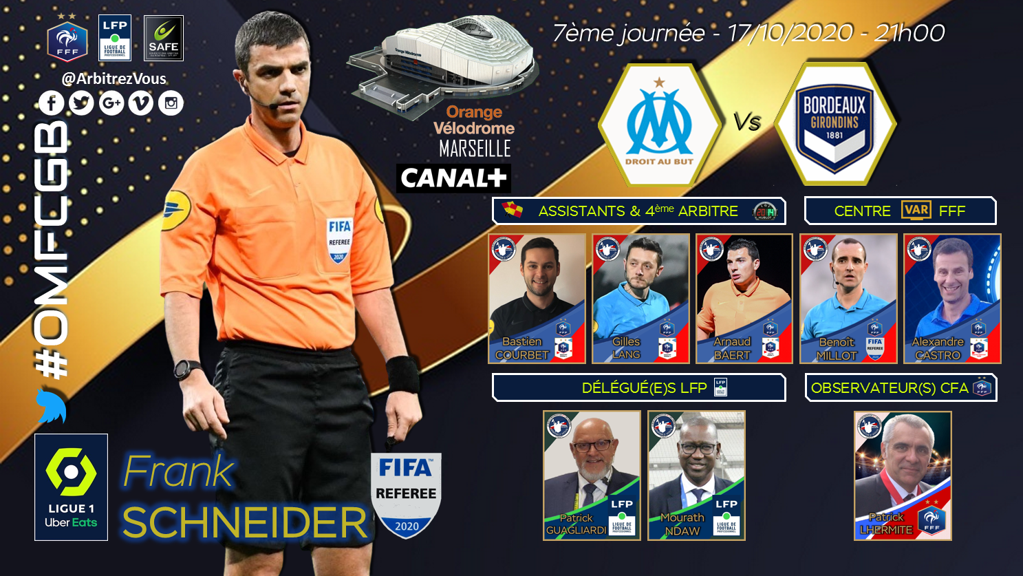 Le corps arbitral de la rencontre de la 7ème journée de Ligue 1, entre l’Olympique de Marseille et les Girondins de Bordeaux, a été désigné. L’arbitre principal sera Monsieur Frank Schneider.