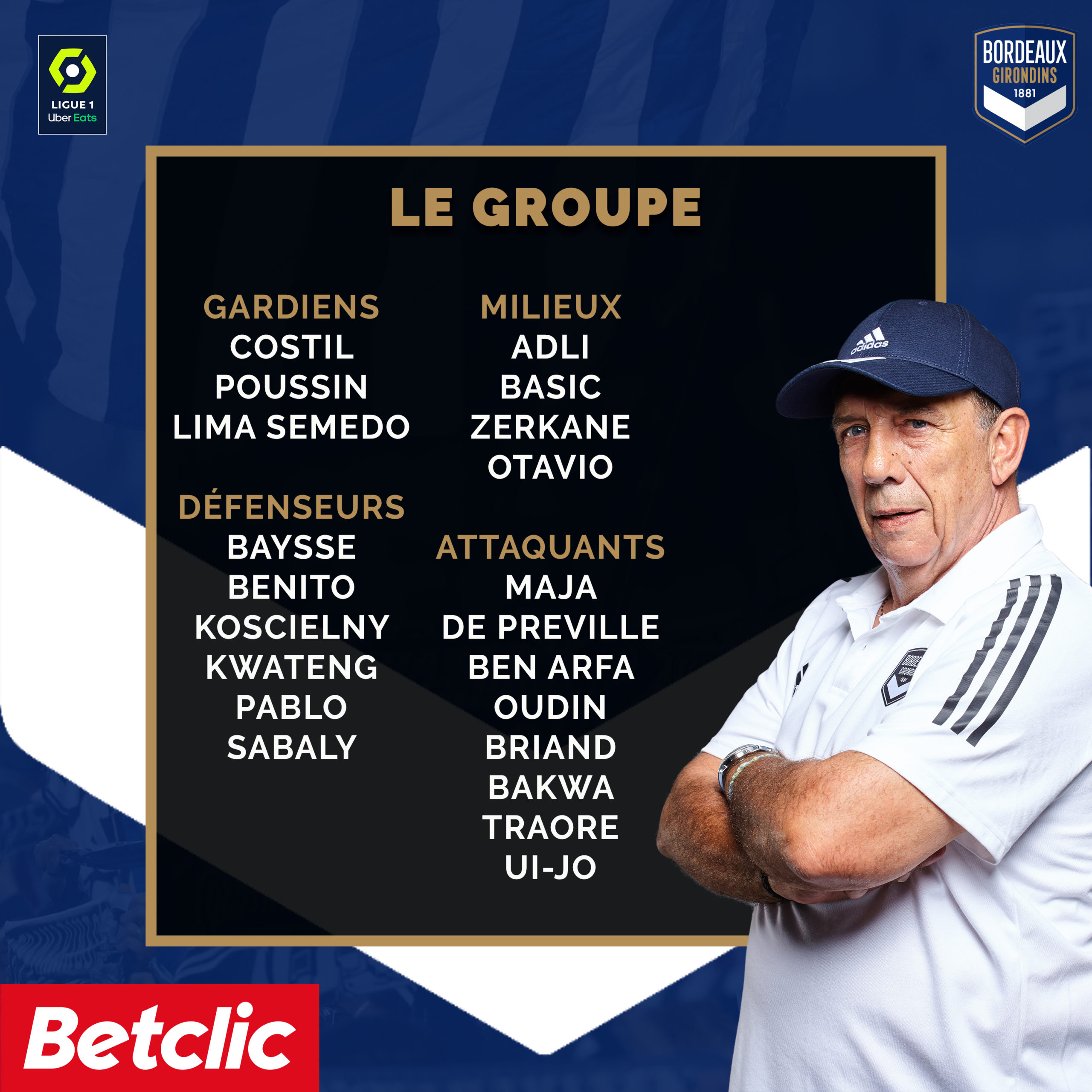 Voici le groupe des Girondins de Bordeaux convoqué par Jean-Louis Gasset, pour le déplacement à Paris demain soir (21h), match comptant pour la 12ème journée de Ligue 1 2020-2021.
