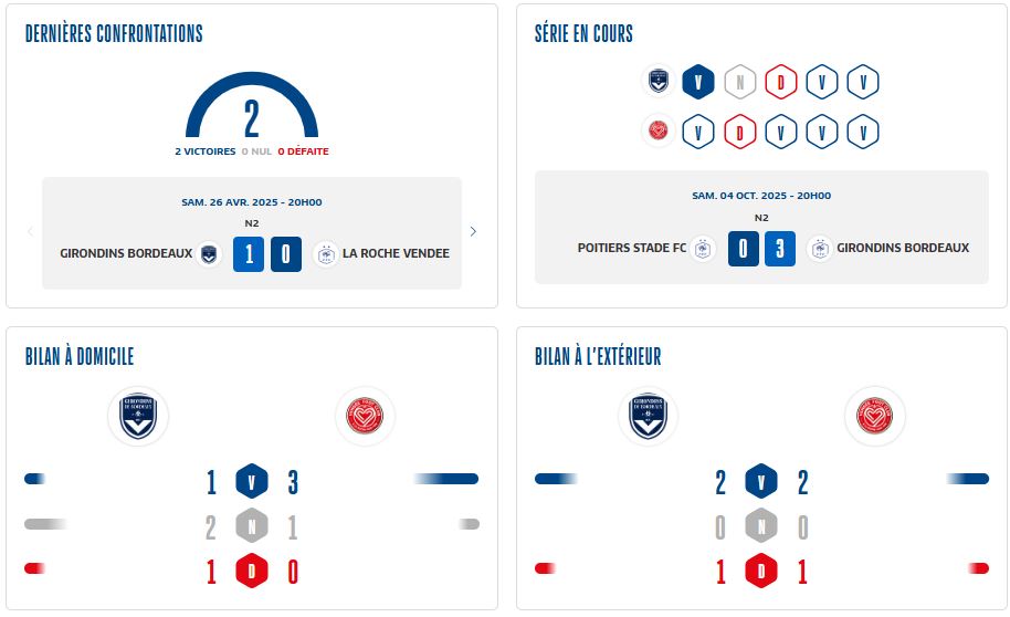 Les Girondins de Bordeaux ont croisé le club de La Roche Vendée à deux reprises la saison dernière. Les bordelais s’étaient imposés 1-0 à domicile grâce à Etienne Beugré. La moyenne d’âge est de 27,4 ans à La Roche-sur-Yon, contre 26,5 ans à Bordeaux.