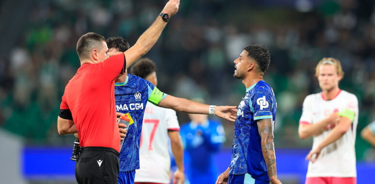 « La seule chose que j’ai envie de dire sur cette action, c’est bravo à l’arbitre, et merci à la VAR. On est toujours en train de défoncer la VAR quand ça ne fonctionne pas… Là, tout s’est bien passé. Une injustice énorme qui aurait pu être en notre faveur, à la faveur de l’OM, mais soyons magnanimes, c’est une bonne décision qui fait que le match n’a pas été vicié. Parce qu’à 2-0, si le pénalty est accordé, le match est terminé, et Marseille ne mérite peut-être pas sa victoire. Donc bravo à l’arbitre d’avoir reconnu son erreur et d’avoir bien jugé après. Le règlement est appliqué, simulation, il n’y a rien qui me choque. Ce qui me choque c’est le premier carton jaune ».