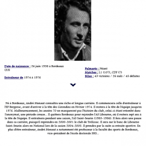 • André Menaut 26/06/1938-16/07/2019, entraîneur, au club entre 1974 et 1976, 116 matchs