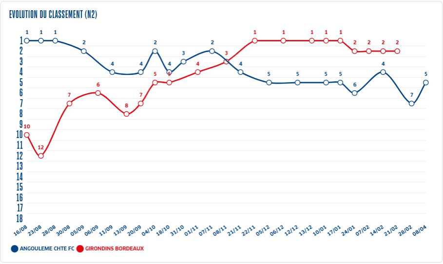 Les Girondins de Bordeaux ont croisé le club d’Angoulême à plusieurs reprises dans l’histoire, notamment dans les années 70 lorsque le club charentais évoluait en première division. Au total il y a eu 9 confrontations, 5 victoires bordelaises, 2 matchs nuls et 2 victoires angoumoisines. Bordeaux a marqué 16 buts, Angoulême 10. La dernière rencontre remonte au match aller lors de la 6ème journée et ce match nul 1-1. C’est Matthieu Villette qui avait ouvert le score.