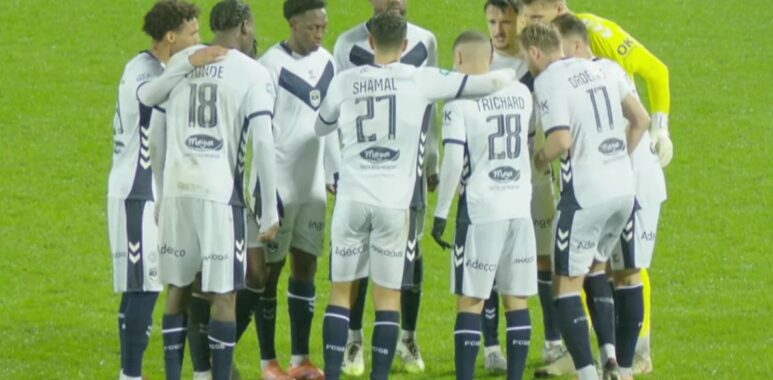 En seconde période pas de changements côté bordelais. Les bordelais repartent de l’avant pour essayer de doubler la mise. Steve Shamal, plutôt discret depuis le début du match, a une occasion mais c’est contré en corner, qui ne donnera rien. A noter que défensivement c’est relativement calme à 10 contre 11, même si Jean Grillot doit intercepter un ballon. Ludéric Etonde va avoir une belle opportunité à la 56ème mais il frappe sur le gardien, après une belle action de Royce Openda. A la 58ème Tidyane Diagouraga cède sa place à Faïssal Mannaï.