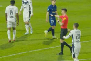 Sur le terrain le match se tend car Angoulême fait deux grosses fautes en l’espace de deux minutes, dont la première de Hamdi, qui avait déjà un jaune et n’a rien pris… La deuxième est une grosse semelle sur Abou Ba, carton jaune logique pour le joueur charentais, qui méritait même un rouge (31ème). Maintenant Openda reçoit un coup de coude… Les charentais jouent très durement et l’arbitre ne sévit pas assez… Situation charentaise avec Majid, qui obtient un corner après une frappe contrée. A la 41ème c’est Royce Openda qui est proche de marquer mais sa frappe est déviée par le gardien. Avec l’incident de la barrière, l’arbitre annonce huit minutes d’arrêts de jeu. Corner pour Angoulême qui ne donne rien malgré un cafouillage. Sur la relance Openda centre pour Arné mais sa frappe est au-dessus alors que le but était ouvert…