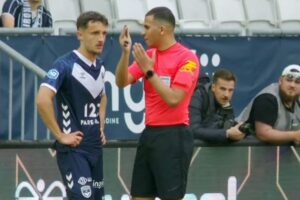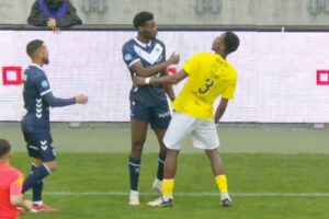 Premier tournant du match avec un accrochage entre Touré et Ludéric Etonde. L’attaquant bordelais met sa main dans le visage du joueur qui s’écroule devant l’arbitre, carton rouge… L’attaquant laisse ses partenaires en difficulté… Le défenseur adverse prend lui un jaune. Malgré tout Bordeaux va de l’avant et sur un centre de Bahassa, c’est Openda qui est à la réception mais il se manque (18ème). C’est au tour de Guillaume Odru de tenter une frappe mais c’est contré et ça termine pour le portier adverse. Nouvelle situation bordelaise avec Odru qui lance Openda mais l’attaquant s’embrouille et finit par servir Odru en retrait, c’est au-dessus. L’international gabonais aurait dû frapper (26ème)…