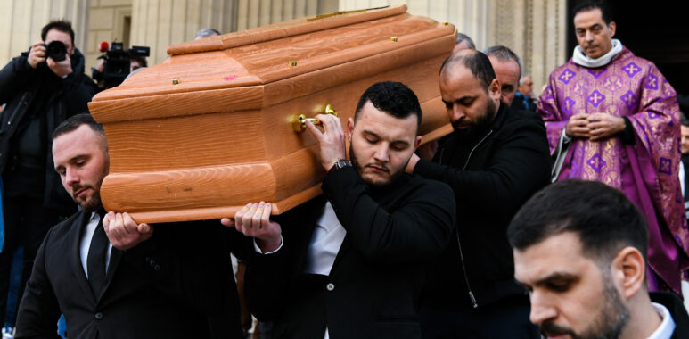 The guests applauded the coffin as it left the Madeleine church during the Funeral of Rolland Courbis on January 14, 2026 in Paris, France. (Photo by Ewen Gavet/Icon Sport) – Photo by Icon Sport