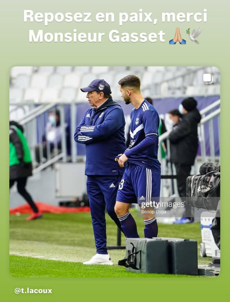 “C’est avec une immense tristesse que nous apprenons aujourd’hui la disparition de Jean Louis Gasset. Il fut l’un des personnages les plus inspirants que j’ai pu croiser au cours de ma carrière. L’un des plus passionnant, passionné, humain aussi. Je me souviens nos parties endiablées de tennis-ballon et de sa mauvaise fois légendaire. De nos séances de tirs au buts avec Luis, à la nuit tombée. De sa gentillesse, de ses ( rares ) colères, de nos discussions sur la foot, et la vie surtout. Je me souviendrais surtout et pour toujours d un homme bon qui m’a rendu meilleur. Repose en paix coach”