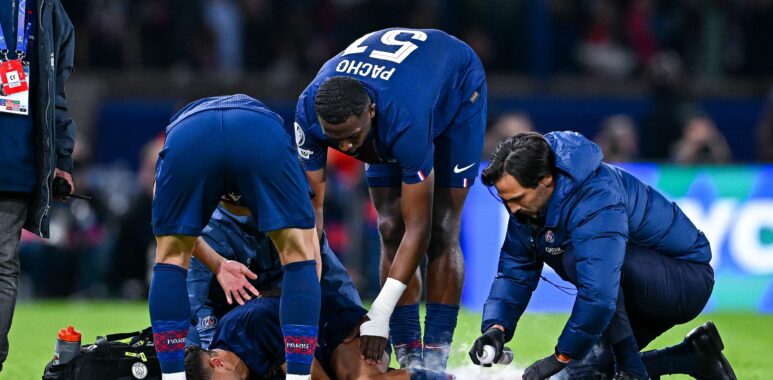 « En direct, sur l’instant T, je trouve que c’est un tacle d’attaquant bête, mais sa volonté n’est pas d’attraper la jambe d’Hakimi, c’est de faire un tacle à la con. Je pense que le VAR attend que la blessure d’Hakimi soit vraiment réelle. A mon avis s’il se relève et qu’il repart, je ne pense pas qu’il mette le rouge. Je pense qu’il n’y a pas une intention de blesser Hakimi en fait. C’est un tacle bête, oui, je n’enlève pas ça, c’est vrai. Mais je pense que c’est la blessure qui faire que le VAR appelle, que l’arbitre va vérifier… Il regarde d’ailleurs cinq angles et je trouve que c’est un peu bête aussi. En fait, ce sont ses fesses qui retombent sur la cheville, donc il n’y a pas une volonté de faire mal. Je ne suis pas sûr qu’en direct ce soit si violent que ça, parce qu’il n’y a pas d’impact en fait. C’est en retombant sur la cheville que la blessure intervient, mais ce n’est pas un truc spectaculaire où tu vois que le mec attrape le tibia… en direct, je précise ».