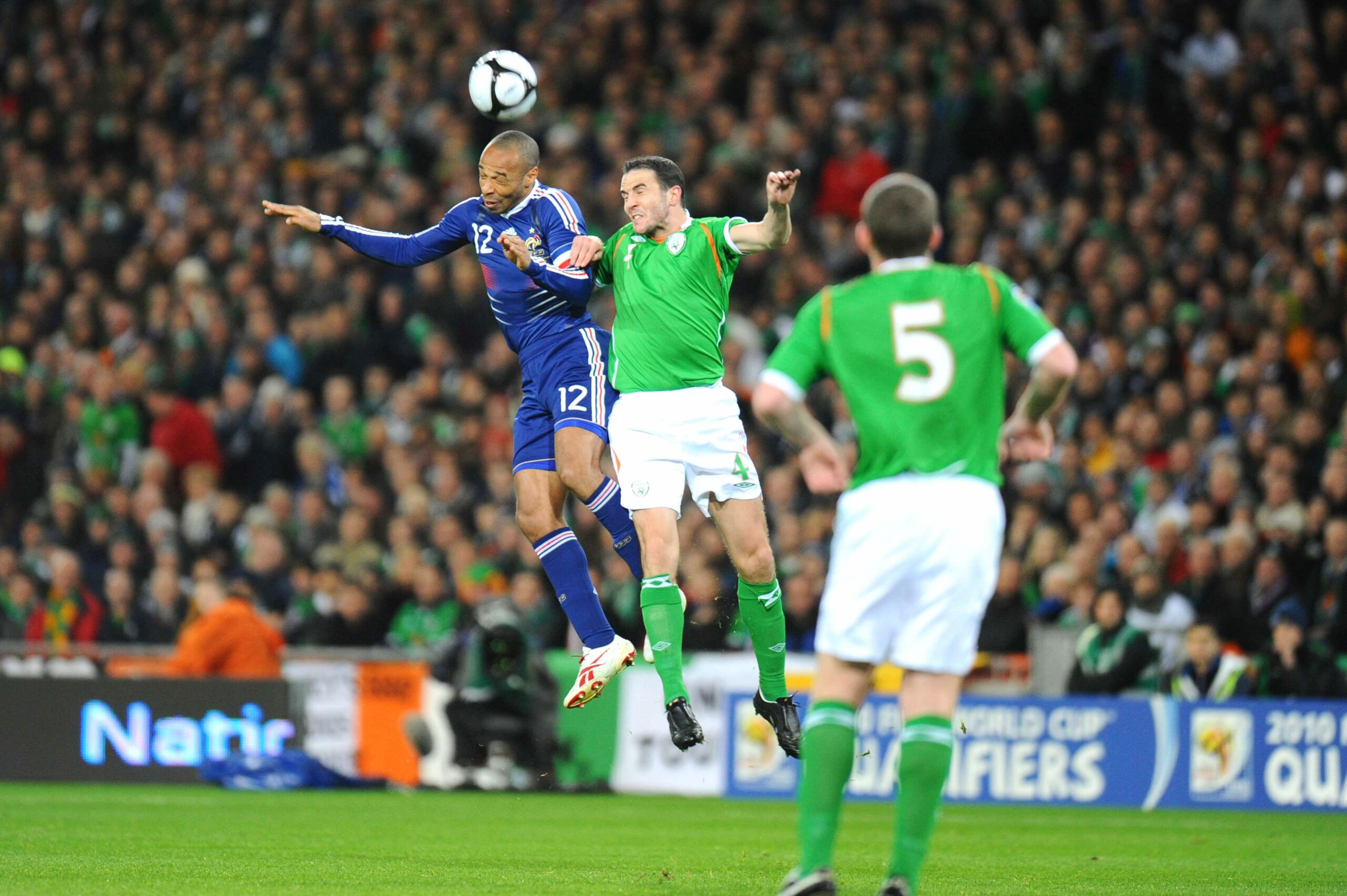 « Vous voyez la tête qu’il a, il se demande ce qui se passe. Mais la vérité de tout ça, c’est que si c’était arrivé aux irlandais, ils se seraient arrêtés, ils auraient dit qu’ils avaient touché le ballon de la main ? Alors, je comprends après la force de l’injustice, que ça ait créé une espèce de trouble psychologique pour les joueurs qui ont vécu ça, même chez les supporters irlandais. Après, Thierry Henry, il ne s’est pas dit ‘tiens, si je faisais ça’. C’est un mauvais rebond, elle se trouve là, et voilà, ok… »