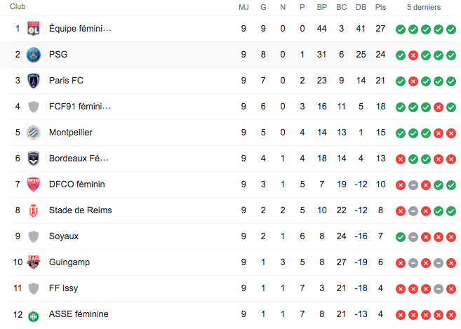 Les classements des équipes des Girondins de Bordeaux après ce week-end (D1F, N3, U19, U17N)