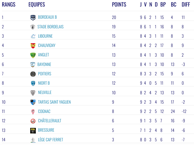Voici les classements des équipes des Girondins de Bordeaux après ce week-end.