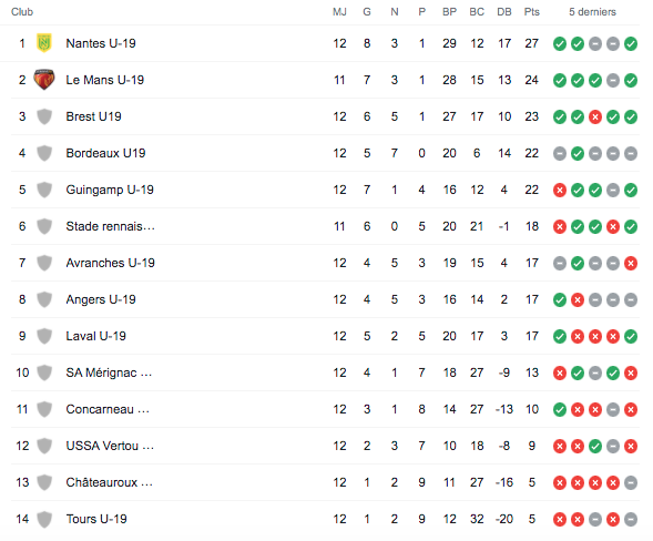 Les U17 Nationaux ont eux aussi fait match nul à l’extérieur 0-0 face à Nîmes. Ils sont 3èmes avec 25 points derrière Toulouse et Montpellier.