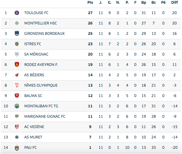 La réserve des Girondins de Bordeaux (National 3), ne jouait pas ce week-end. Elle est toujours en tête de son groupe avec 20 points
