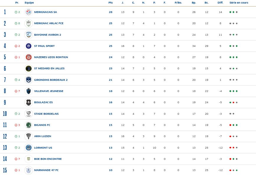 - Mérignacais SA 6pts +7 (-1m)
