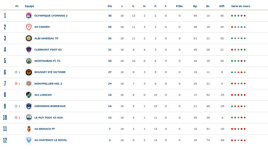 Championnat de D3 Féminine – Poule B – Journée 16