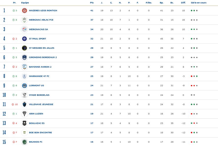 - FC Girondins de Bordeaux 2 28pts +34