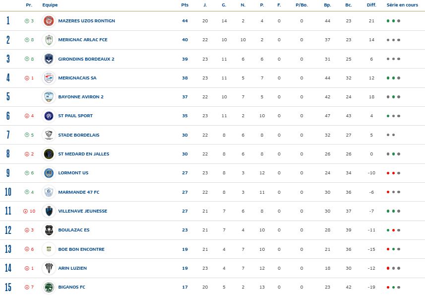 15h00 FCE Mérignac-Arlac 2 – 2 FC Girondins de Bordeaux 2