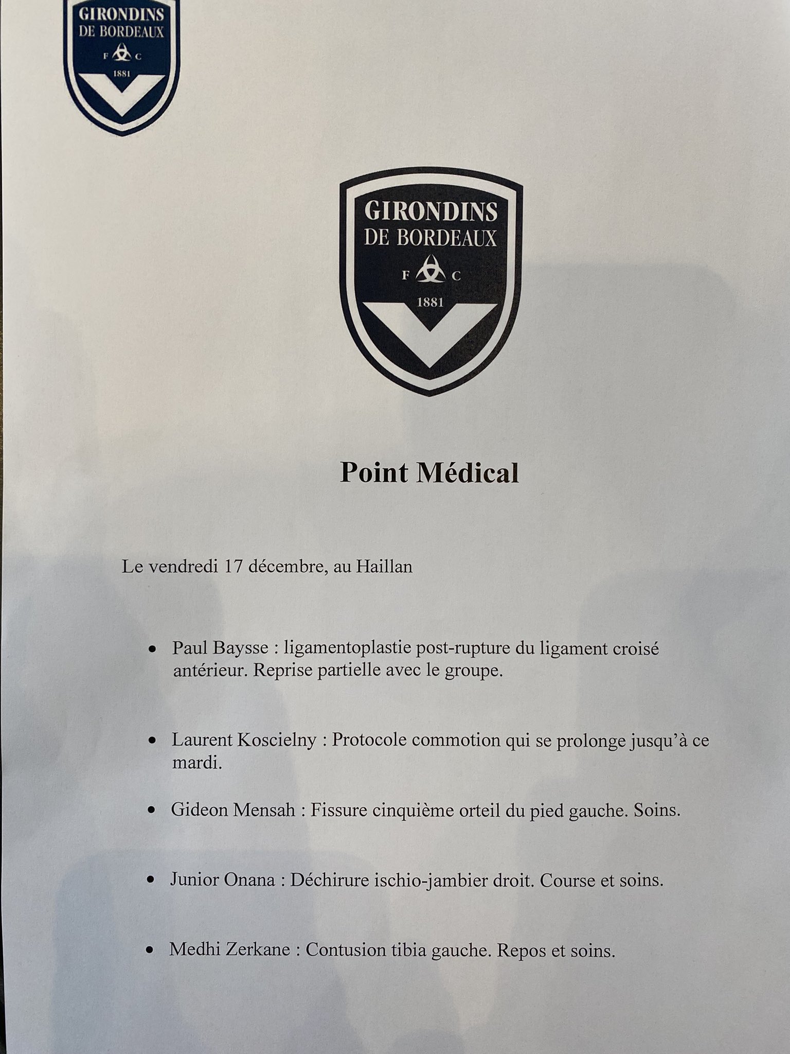 [CdF] Les absents girondins de Bordeaux/Jumeaux de M’Zouazia, plusieurs joueurs économisés
