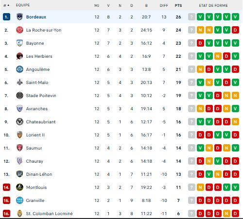- FC Girondins de Bordeaux 16pts +45 (-1m)