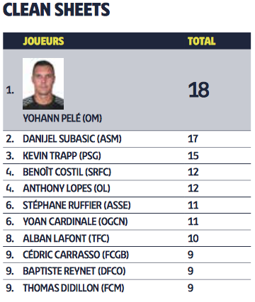 Cédric Carrasso figure dans le classement des gardiens qui ont réussi le plus de clean sheets cette saison effectuée par la LFP. Le portier bordelais a réalisé 9 clean sheets se classant à la 9ème place à égalité Baptiste Reynet (Dijon) et Thomas Didillon (Metz).